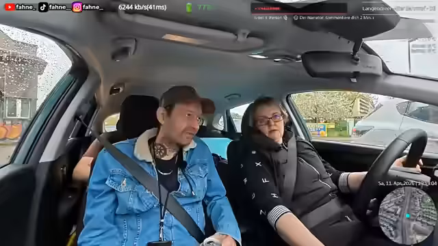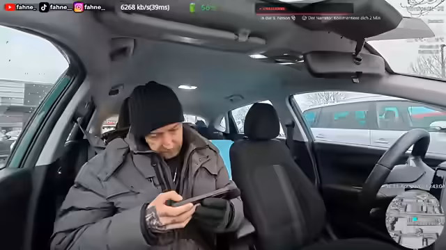02:39:54Fokus auf die Autofahrt und Beobachtungen des Verkehrs. Die Situation im Auto wird beschrieben, wie z.B. der Streit um die Temperatur und die Benennung von Gegenständen wie Tummy Block. Ein Treffen mit Personen wie Dominik wird erwähnt. Die Unterhaltung ist geprägt von Situationskomik, wie dem leichten Panikzustand wegen eines möglichen technischen Problems und einem Hacker-Vorfall während des Streams.