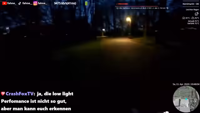 04:07:45Der Streamer beschäftigt sich mit Bildqualitätsproblemen und technischen Schwierigkeiten, die durch das Regenwetter entstehen. Das Bild der Kamera ist leicht verwaschen, was auf die Lichtverhältnisse zurückzuführen ist. Gleichzeitig diskutiert er die ständigen Netzwechsel und den höheren Stromverbrauch der Router, was die Übertragung zusätzlich beeinflusst. Trotz dieser widrigen Umstände betont er die beeindruckende Leistung, mit der er den Stream aufrechterhält, und stellt fest, dass dies mit sehr wenig Power möglich ist.