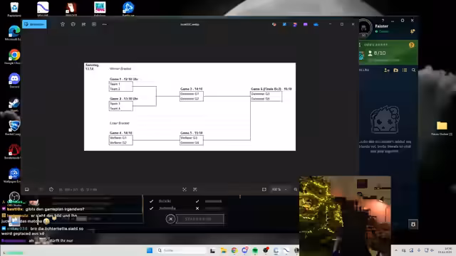 00:00:15Nach der Einrichtung des WoW-Charakters kündigt der Streamer das Hauptevent des Abends an: Ein Turnier in League of Legends. Es wird betont, dass dies ein Community-Turnier ist, bei dem Zuschauer durch spezielle Commands wie !snocks und !emma Einfluss auf das Spielgeschehen nehmen können. Die Turnierstruktur und die geplanten Spielpartien werden grob umrissen.