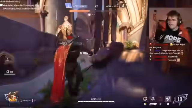00:58:02Während des Spiels kommt es zu einer überraschenden Begegnung mit Zuschauern, die sich als Papa Platte und Freista identifizieren. Die Freude über das Zusammentreffen ist groß, und es werden kurze Begrüßungen ausgetauscht. Parallel dazu wird die Leistung des eigenen Teams analysiert, wobei festgestellt wird, dass ein Teammate hinten 'reinhaut'. Es wird überlegt, ob man 'Hasta la vista' pullen kann, und Ignorias wird für seine Blockkünste gelobt. Trotzdem gibt es Kritik an der eigenen Leistung und der des Teams, insbesondere daran, wie oft man von Gegnern getötet wird. Die Gefahr wird neutralisiert, und Loki wird für sein heimliches Vorgehen kritisiert. Ein gelungenes Stun-Manöver wird gefeiert, und der Sprecher klopft sich selbst auf die Schulter. Es wird über die Scarlet Witch Ult diskutiert, die als eine der schlechtesten im Spiel angesehen wird, da sie leicht zu blocken und zu stunnen ist. Der Sprecher gibt an, George Clooney gekillt zu haben und erklärt seinen Platin-Rang und Diamond 2 Peak mit seinem eigenen Können. Am Ende des Spiels wird ein Sieg gefeiert und ein Lob an das Team ausgesprochen.