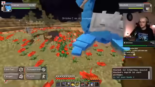 00:38:56Nachdem das technische Problem behoben ist, beginnt das eigentliche Gameplay im Cobblemon. Der Streamer stellt die Ausgangssituation für die Zuschauer vor: Er spielt auf einem Server mit etwa 20 bis 25 anderen Streamern, die eine Woche Zeit haben, um ein stabiles Pokémon-Team aufzubauen, um anschließend in einem Turnier gegeneinander antreten zu können. Er präsentiert sein aktuelles Team, das bereits aus mehreren Pokémon besteht, wie Tinkertuff, Gengar, Slimog und Lapras, und zeigt die bereits eingestellten Attacken. Das Hauptziel für die aktuelle Session ist es, die Pokémon zu leveln, zufällige Pokémon zu fangen und seltene TM-Attacken zu finden, um das Team weiter zu optimieren.