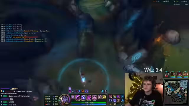 00:18:01Der Streamer startet in die neue League of Legends Season und beginnt seine Promo-Games. In seinem ersten Spiel spielt er die Mid-Lane und ist in Platin 4 gerankt. Das Spiel verläuft zunächst holprig, sein Team kämpft gegen einen starken Gegner, der unter anderem Mundo spielt. Der Streamer analysiert seine Leistung und die Meta-Champs wie Artox und Renata Glasc, während er das Spiel durch kämpft.