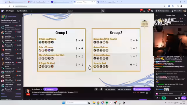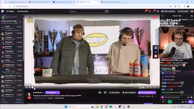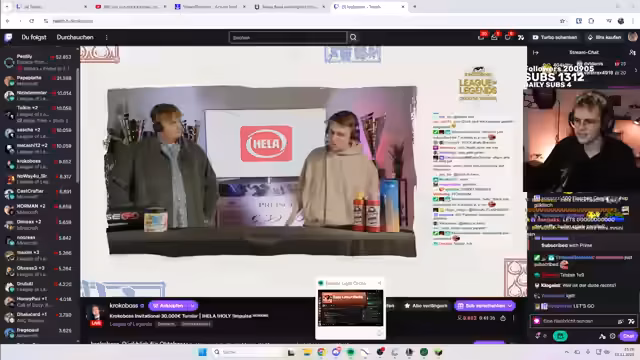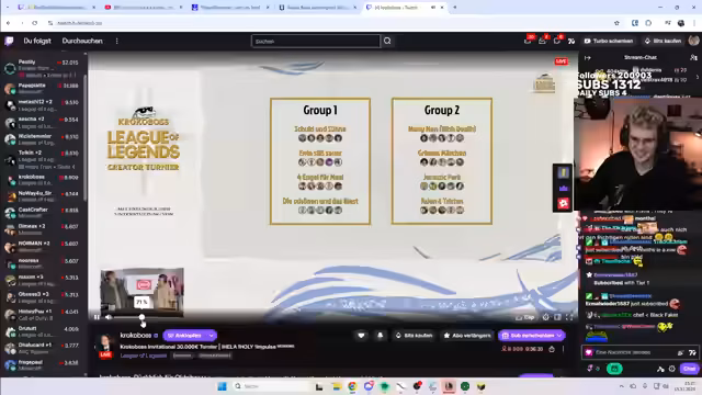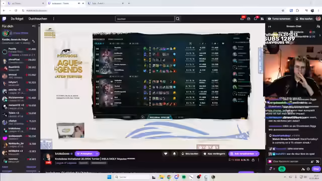 00:24:02Der Streamer sucht nach Informationen zu den Teams des Turniers, die angeblich auf Krokoboss' Instagram-Seite veröffentlicht wurden. Er geht die Teams durch und stellt sein eigenes Team vor, das aus Arsene, Tristan, Hachicicke und ihm selbst besteht. Er beschreibt sich und Hachicicke humorvoll als „gebrechliche alte Männer“, die von Eni und Tristan getragen werden müssen. Das erste Spiel um 15:30 Uhr ist gegen das Team „Manyman“ mit Spielern wie Nickbiz, Nicky, Stämler, Metashi und Tolkien. Trotz der starken Gegner ist der Streamer optimistisch und prophezeit einen „Freewin“. Tristan, ein Teammitglied, stößt dazu und die beiden besprechen kurz die Regeln und die Stärke der Gegner, insbesondere die von Sola, den sie als „unteres Grandmaster“ einschätzen. Sie sind zuversichtlich, da sie mit Tristan einen erfahrenen Spieler in ihrem Team haben.