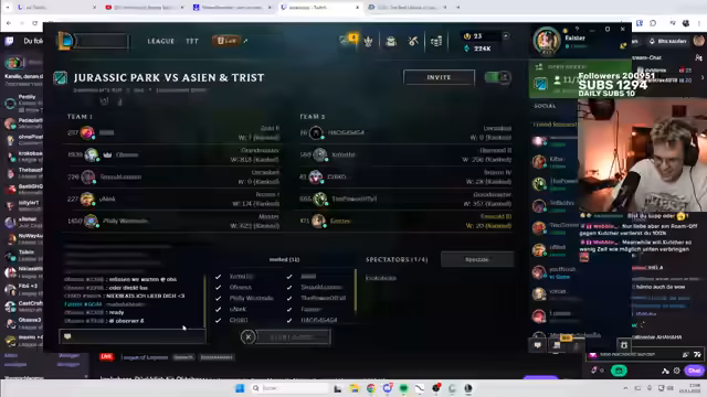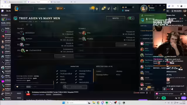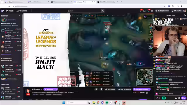 01:23:30Die Vorbereitungen für das Krokoboss-Turnier laufen auf Hochtouren. Es werden Informationen zu den teilnehmenden Teams und Spielern ausgetauscht, wobei bekannt wird, dass Tolkien Zed spielen möchte und Obsessed als Pro-Spieler in seinem Team viele Assassinen bevorzugt. Die Diskussion dreht sich um die Vor- und Nachteile bestimmter Champion-Picks und Bans, insbesondere im Hinblick auf die Gegner. Es wird auch die Möglichkeit erörtert, Rakan und Xayah erneut zu spielen, um die Gegner nicht auf Renata als Support zu fixieren. Die Spieler sind gespannt auf den Turnierstart um 14:35 Uhr und diskutieren über mögliche OP-Champions wie Aurelion Sol, der im Late Game sehr stark sein kann.