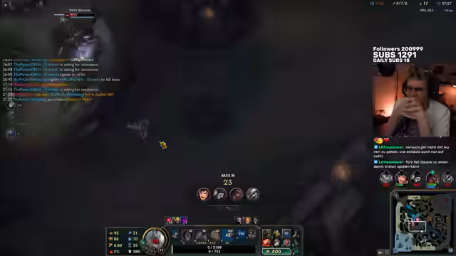 09:19:21Die Mid-Game-Phase erweist sich als herausfordernd, insbesondere für Alistar, der sich unwohl fühlt und Schwierigkeiten hat, effektiv zu agieren. Die Gegner nutzen ihre Stärken, und das Team muss sich auf das Kiten und Poken konzentrieren, um Schaden zu vermeiden und Gelegenheiten für Kills zu schaffen. Ein erfolgreicher Kill auf der Toplane durch das Team gibt Hoffnung, aber die Dominanz des gegnerischen Darius bleibt eine Bedrohung. Die Kommunikation über die Positionen der Gegner und die Nutzung von Summoner-Spells ist entscheidend, um Teamfights zu gewinnen und Türme zu sichern. Trotz der Schwierigkeiten bleibt die Motivation hoch, das Spiel zu gewinnen, auch wenn das Weiterkommen bereits gesichert ist.