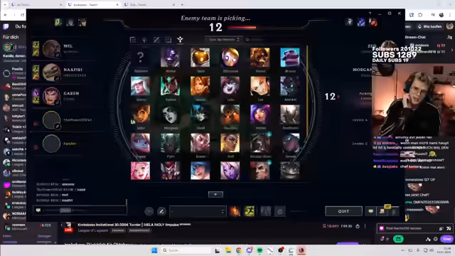00:06:50Der Streamer beginnt den Tag mit einer Begrüßung und erwähnt, dass er noch müde vom langen Stream am Vortag ist. Er freut sich auf das anstehende Kroko League of Legends Turnier, das um 15:30 Uhr mit dem ersten Spiel startet. Zuvor sind jedoch noch einige Trainingsmatches mit seinem Team geplant. Er erwähnt auch, dass er gestern Abend noch mit Dima gestreamt hat und dies als eine besondere Erfahrung beschreibt. Trotz leichter Stimmprobleme ist die Vorfreude auf das Turnier groß, da er ein „richtig geiles Team“ hat und die Chancen auf einen Sieg offen sieht. Es wird auch kurz Minecraft gestartet, um ein bisschen zu terraformen, bevor die eigentlichen Trainingsmatches beginnen. Die Stimmung ist motiviert und auf den bevorstehenden Wettkampf ausgerichtet.