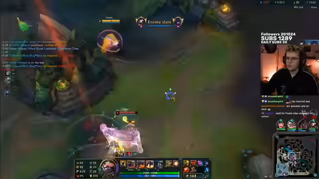 08:01:52Das Spiel gegen Chef Strobl hat begonnen, und die Spieler analysieren die gegnerische Champion-Auswahl, insbesondere die Kombination aus Yuumi und Orianna. Es wird diskutiert, wie man am besten mit der Fähigkeit der gegnerischen Midlanerin umgeht, Ultimate-Fähigkeiten zu reflektieren. Die Spieler konzentrieren sich darauf, defensiv zu spielen und Last-Hits zu sichern, während sie auf Gelegenheiten warten, den Gegner zu ganken. Die Bedeutung von Team-Rotationen und das Timing von Fähigkeiten werden besprochen, um Vorteile zu erzielen und die Kontrolle über das Spiel zu gewinnen. Trotz einiger Rückschläge und kleinerer Fehler versuchen die Spieler, ihre Moral aufrechtzuerhalten und sich auf die kommenden Teamfights und Objectives zu konzentrieren.