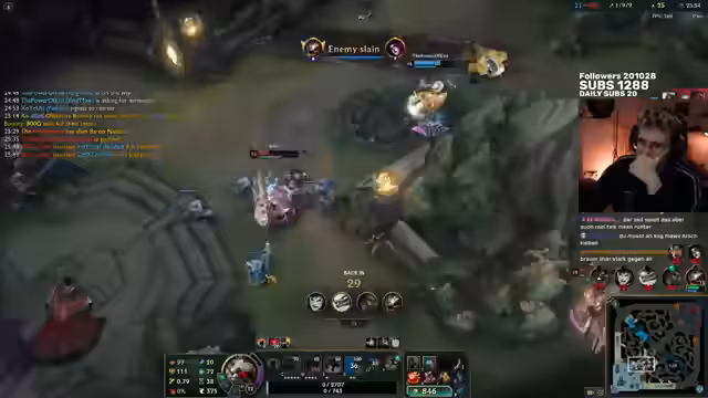 09:09:12Die Strategie des Invadens in der frühen Spielphase wird diskutiert, wobei die Spieler unterschiedliche Meinungen dazu haben. Es wird betont, dass Invades riskant sein können, da alle Spieler auf Level 1 gleich stark sind. Ein frühes Fehlspiel führt zu einem Flash des Gegners, was die Bedeutung einer vorsichtigen Herangehensweise unterstreicht. Die Schwierigkeiten, als Alistar in der Botlane gegen aggressive Gegner zu bestehen, werden thematisiert, insbesondere wenn der Gegner einen Darius auf der Toplane hat, der schnell Schaden anrichten kann. Die Spieler versuchen, sich auf die Lane-Phase zu konzentrieren und Gold und Erfahrung zu sammeln, während sie auf Gelegenheiten für Kills warten.