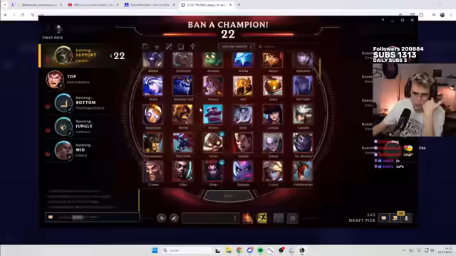 06:53:32Das Team bereitet sich auf das nächste Spiel vor, das erneut gegen dieselben Gegner stattfindet. Es gibt eine kurze Verzögerung, da ein Spieler namens Nickbit noch in einer Fortnite-Runde steckt und ein anderer Spieler einen Vanguard Error hat, der einen PC-Neustart erfordert. Die Bann-Phase beginnt, und es wird beschlossen, Dr. Mundo zu bannen, da dieser im vorherigen Spiel stark war. Es wird überlegt, ob Mel oder Garen die bessere Wahl wäre, wobei Mel bei Assassin-Gegnern vorteilhaft sein könnte. Letztendlich wird Tristana Rakan in Betracht gezogen, aber Mel wird bevorzugt, da sich der Spieler damit sicherer fühlt. Weitere Banns umfassen Lulu und Xinsau, um bestimmte AD-Jungler zu verhindern. Für den Jungle wird Wukong gewählt, da der Spieler sich damit wohler fühlt, und als Support Rakan, obwohl Poppy als stark gegen die Gegner angesehen wird. Die Strategie für das Spiel ist es, aggressiv zu spielen und auf Level 2 oder 3 All-In zu gehen, während man gleichzeitig vorsichtig bleibt und nicht zu übermütig wird.