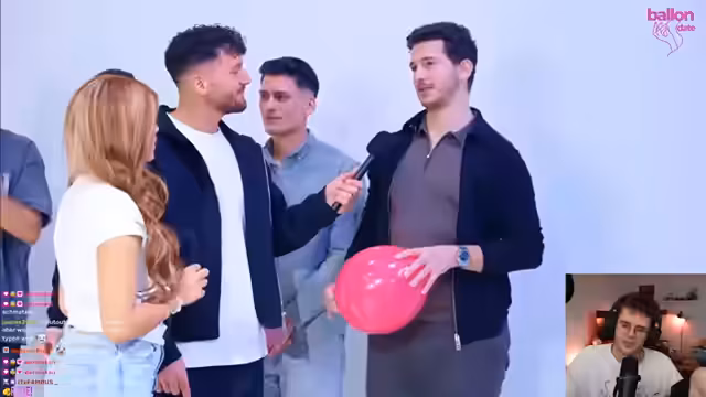 00:38:32Nachdem der Streamer über verschiedene Alltags-, Technik- und League of Legends-Themen gesprochen hat, beginnt die erste Hauptaktivität: 'Pop the Ballon'. Der Streamer stellt neun männliche Kandidaten vor, die sich jeweils kurz vorstellen und ihre Interessen nennen. Das Spielprinzip ist simpel: Eine Frau, Lina, geht nacheinander zu jedem Mann, und wenn er nicht ihr gefällt, platzt der Ballon, der sie verbindet. Interaktive Elemente und die Reaktionen des Streamers auf die Aussagen der Kandidaten prägen das Segment.