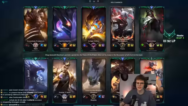 02:10:51Nach dem Spiel reflektiert der Streamer seine Leistung und bleibt bei seiner Entscheidung, weiterhin Renata zu spielen. Er gibt zu, kurz mit dem Gedanken gespielt zu haben, den ganzen Tag im Stream Jungle zu spielen, hat aber gemerkt, dass ihm das im Gegensatz zu Renata keinen Spaß macht. Auch wenn er kürzlich Sona für sich entdeckt hat, bleibt er skeptisch gegenüber der Matchup gegen Sona und stellt klar, dass Renata für ihn der beste Champion ist.