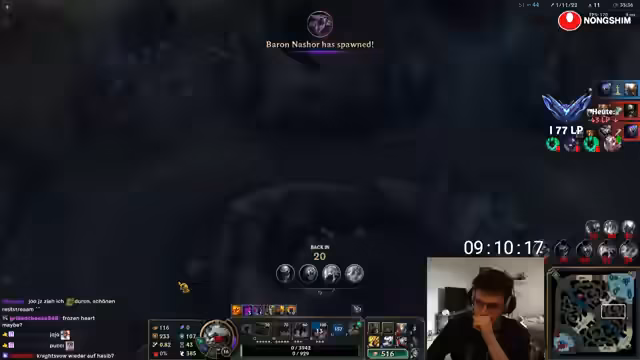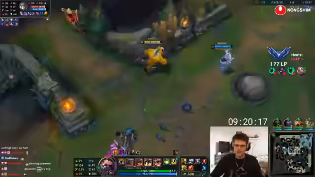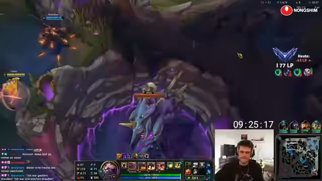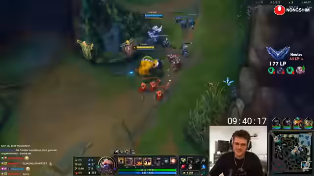 09:30:14Die Kommunikation im Team ist entscheidend für den Spielverlauf. Der Streamer gibt Anweisungen wie aufpassen, stun, lock und shield, während er aktiv die Teammitglieder koordiniert. Es wird beschrieben, wie Renekton eingesetzt werden sollte, um Gegner zu kontrollieren. In diesem Abschnitt wird auch das Spielverhalten des Teams analysiert, das zu einer gewissen Toxizität führen könnte, aber das Potenzial zum Sieg noch besteht.