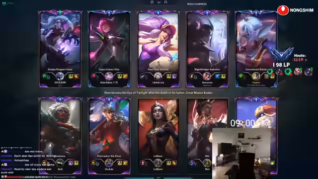 00:04:12Der Stream startet mit der Ankündigung eines 12-stündigen League of Legends Streams. Der Streamer erwähnt persönliche Herausforderungen, eine Zahnarzt-Krone und hat sich mitgetränkt und verpflegt. Er begrüßt die Zuschauer und teilt mit, dass er in vier Tagen nach Sizilien in den Urlaub fährt. Die Stimmung ist motiviert, aber auch von persönlichen Sorgen geprägt, insbesondere den unvorhergesehenen Zahnarztkosten.