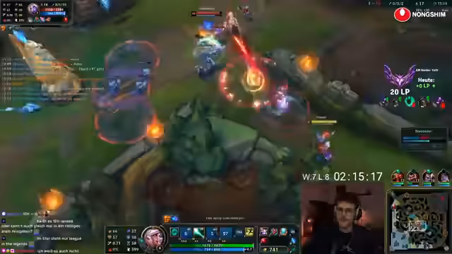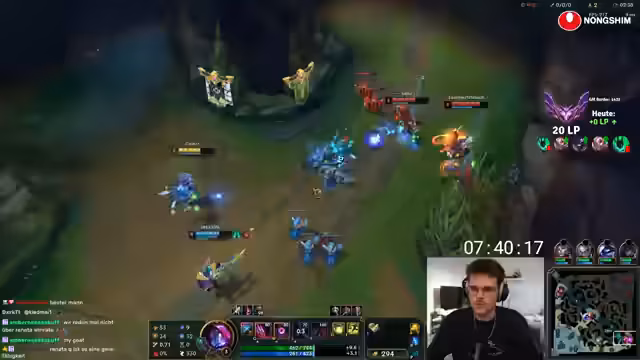 07:37:31Der Streamer kommentiert seinen Spielverlauf in League of Legends und äußert sich zu seiner Leistung. Er erwähnt, dass er hart gearbeitet hat, um Kills zu erzielen, und denkt über seinen Spielstil nach. Der aktuelle Stand des Spiels wird mit 6-6 bewertet und der Streamer diskutiert über den Ranglisten-System und die Bewertung der Spiele, wobei er das System als Scam bezeichnet. Er analysiert die Spielweise und die Notwendigkeit von Präzision in der Entscheidungsfindung.