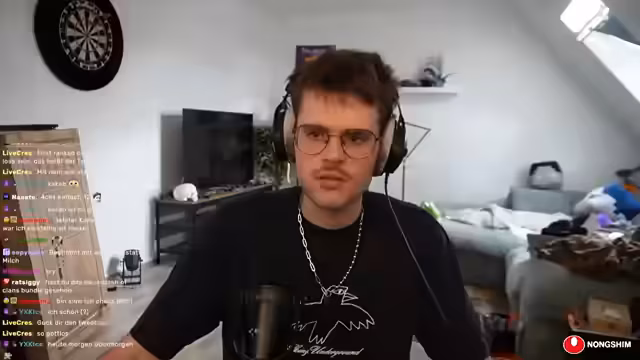 11:21:11Der Streamer wechselt häufig zwischen verschiedenen Themen, die aus dem Chat der Zuschauer aufkommen. Dazu gehören die Geschwindigkeit der Internationalen Raumstation ISS, verschiedene Musikfestivals wie Tomorrowland oder Coachella, sowie Diskussionen über Deutschrap und EDM-Musik. Er bezieht auch verschiedene Popkultur-Referenzen wie Death Note oder One Piece mit ein und zeigt dabei ein breites an Wissen und Interesse an unterschiedlichen Themenbereichen.