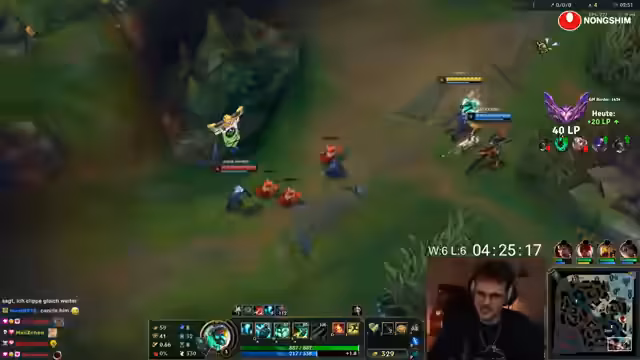 02:48:54Im weiteren Verlauf des Streams konzentriert sich der Streamer auf das aktuelle Spiel. Er erwähnt verschiedene Champions wie Rengar und Sona. Der Streamer diskutiert über die Meta und überlegt, welche Gegen Gegenstände er kaufen soll. Er äußert sich über das Gameplay und die Zusammenarbeit im Team. Besonders geht er auf einen abgebrochenen Kampf ein und überlegt, wie er das Spiel noch drehen kann. Er scheint mental stark, aber auch ein wenig erschöpft von den stundenlangen Sessions.