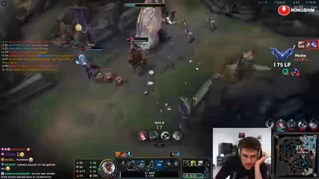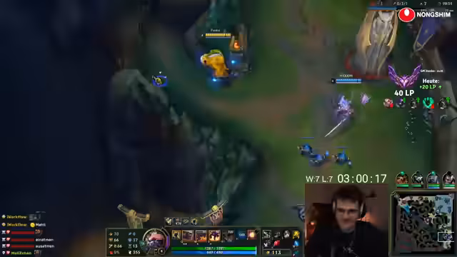 02:44:38Das Stream-Segment beginnt mit emotionalen Reaktionen des Streamers auf sein Spielgeschehen. Er erwähnt, dass es 17 Uhr ist und viele Leute schlafen gehen. Der Streamer spielt League of Legends und kommentiert verschiedene Spielzüge, insbesondere die Top-Lane und das Verhalten der Gegner. Er äußert sich zu seiner Spielweise und der Bedeutung von Flash-Spielen. Der Streamer wirkt frustriert über einige Verluste, aber bleibt motiviert weiterzuspielen.