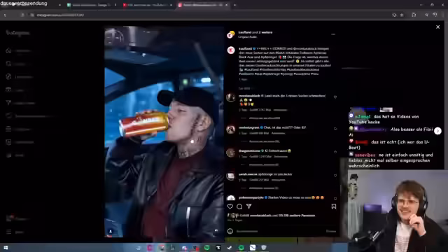 01:37:29Es dauerte zweieinhalb bis drei Jahre, bis Gönnergy auf den Markt kam. Es war wichtig, dass sich das Getränk im Handel hält und nicht nur ein One-Hit-Wonder ist. Er ist aufgeregt, dass sich Genergy hält, was er nicht erwartet hätte. Die Gamescom 2022 war surreal mit hunderten Menschen um ihn herum. Er blendete alles um sich herum aus, um es zu verarbeiten. Er erzählt von einem Move, den er jedes Jahr auf der Rolltreppe macht. Er würde das lila neganergy einem Monster vorziehen, weil es wie Traubenschorle schmeckt. Er findet es geil, Streaming-Momente auf dem Handy oder PC zu sehen. xQc hat es in die YouTube-Deutschland-Doku geschafft.