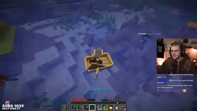 03:12:06Der Coach zeigt dem Streamer eine fortgeschrittene Taktik, um Schatzkarten zu finden. Ein Schatz muss immer unter Sand liegen, und man kann mit F3 die Blockkoordinaten überprüfen. Der Schatz befindet sich bei den Koordinaten 9x9 oder 8x8. Der Streamer findet eine Kiste mit einem Herz des Meeres, TNT und Fisch. Das TNT wird humorvoll abgelehnt, da sie im Hardcore-Modus spielen. Sie finden auch einen Prismarin-Kristall und einen Trank der Wasseratmung, der drei Minuten Unterwasseratmung ermöglicht. Die Fische werden als wichtiges Nahrungsmittel mitgenommen. Anschließend demonstriert der Coach eine Technik zur Reduzierung von Fallschaden mit einem Wassereimer, indem man kurz vor dem Aufprall Wasser platziert. Der Streamer übt diese Technik und lernt schnell. Es wird auch erklärt, dass man Kühe mit einer Axt und einem kritischen Treffer sofort töten kann, was durch gelbe Partikel angezeigt wird. Der Streamer plant, seine verfluchte Rüstung loszuwerden, indem er sich vom Coach schlagen lässt, bis sie kaputtgeht. Sie sammeln Wolle für Betten und entdecken ein Armadillo, das für Hunde-Rüstungen benötigt wird.
