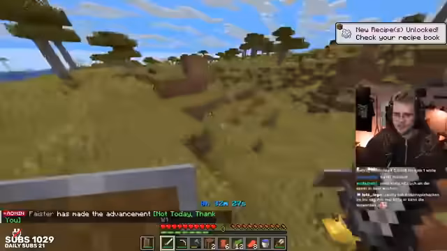 03:26:37Die Spieler entdecken ein Dorf, wo sie Brot stehlen und Bögen handeln können. Sie finden Betten und eine Schmiede mit nützlichen Gegenständen. Der Streamer plant, sich im Dorf niederzulassen, anstatt weiterzuziehen. Der Coach schlägt vor, den Eisengolem zu töten, um Eisen zu erhalten, was der Streamer zunächst ablehnt, da er die Dorfbewohner nicht verärgern will. Es wird erklärt, dass die Dorfbewohner nur sauer werden, wenn man sie selbst schlägt. Der Coach demonstriert, wie man den Eisengolem tötet, während er auf sich selbst Aggro zieht, sodass der Streamer sicher Eisen erbeuten kann. Sie plündern die Schmiede und finden eine Brustplatte ohne Fluch der Bindung. Der Streamer lernt, wie man Brot craftet und nimmt ein Bett aus dem Dorf mit. Sie entdecken einen arbeitslosen Dorfbewohner und verwandeln ihn mit einem Fletching Table in einen Fletcher, der Pfeile und Sticks gegen Smaragde tauscht. Sie beginnen, Holz abzubauen und die Häuser der Dorfbewohner zu plündern, um Sticks zu farmen und mit dem Fletcher zu handeln. Es wird erklärt, dass Dorfbewohner nur zweimal am Tag restocken und ihre Trades teurer werden können.