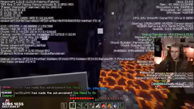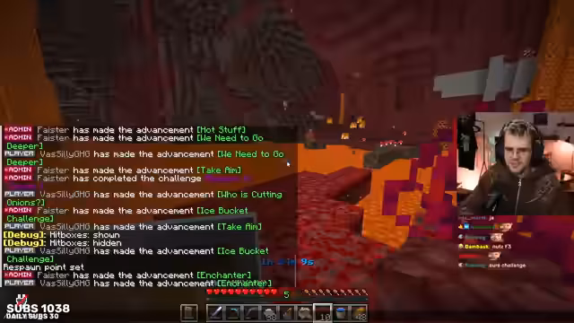 04:00:13Der Streamer und Vadim kämpfen gegen Magma Cubes, die viel Schaden verursachen und sich aufteilen. Es wird betont, wie wichtig es ist, diesen Monstern auszuweichen. Vadim ist besorgt, in Lava zu fallen, während sein Partner ihn beruhigt. Die Axt des Streamers ist fast kaputt, und sie überlegen, neue Werkzeuge zu craften, wobei schwarze Steine als Ersatz für Cobblestone dienen können. Sie suchen nach einer Festung, die für das Durchspielen des Spiels notwendig ist, um Lohnstaub zu sammeln, der für die Herstellung von Ender-Augen benötigt wird. Die Festung ist schwer zu erkennen, da sie sich in der dunkelroten Umgebung tarnt, was zu Verwirrung bei Vadim führt, der das Bauwerk nicht sofort als solches identifiziert. Die Gefahren in der Festung, wie Wither-Skelette und Lohen, werden besprochen, und Strategien zum Ausweichen werden erörtert.