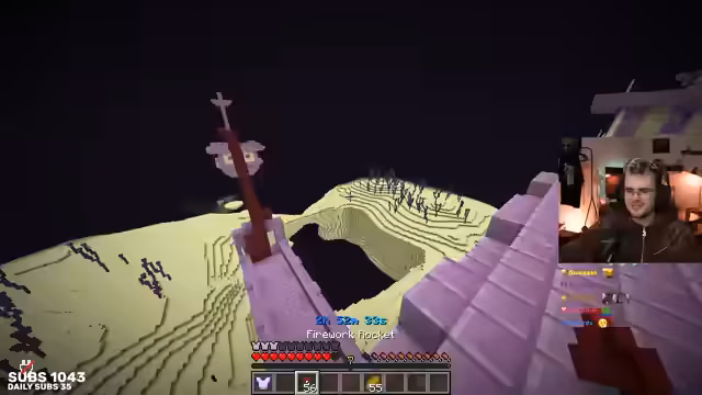 07:03:47Die Spieler beschließen, nach der Elytra zu suchen. Sie müssen durch ein kleines Portal schwimmen, um zu den End-Islands zu gelangen. Ein Spieler gerät dabei in Schwierigkeiten und stirbt fast. Sie müssen vorsichtig sein, da es auf den End-Islands viele Endermen gibt. Um sich fortzubewegen, essen sie Früchte, die sie teleportieren. Sie entdecken eine End-City und suchen nach einem fliegenden Schiff, da dort die Elytra zu finden ist. Sie treffen auf Shulker, kleine Kreaturen, die sie levitieren lassen, wenn sie getroffen werden. Wenn sie zwei Shulker-Schalen sammeln, können sie Rucksäcke craften, die als Kisten fungieren und deren Inhalt mitgenommen werden kann. Die Spieler kämpfen sich durch die End-City, um den Loot zu erreichen. Ein Spieler gerät in eine kritische Situation, da er hoch in die Luft levitiert wird und fast stirbt. Sie schaffen es jedoch, sich zu retten und den Kampf fortzusetzen. Sie finden wertvollen Loot in den Kisten, darunter ein Diamantschwert mit Sharpness 3 und Knockback 2. Sie sammeln weitere Blöcke, um sich in der End-City fortzubewegen. Ein Spieler stirbt und muss respawnen, während der andere Spieler versucht, die Elytra zu finden. Sie kehren zum Schiff zurück, um die Elytra zu holen.