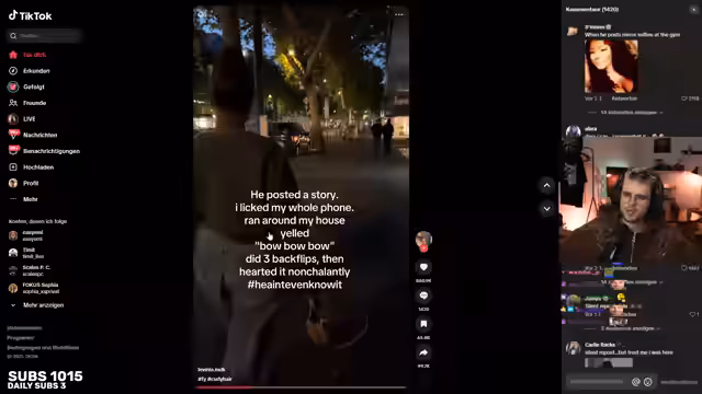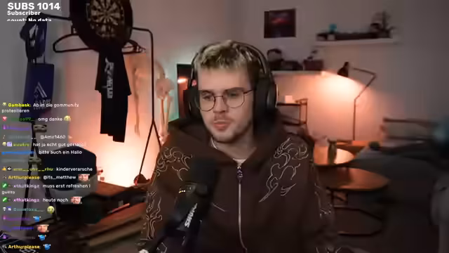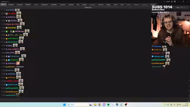 00:12:49Der Streamer teilt einen bizarren Traum, in dem er mit alten Schulkameraden, die alle noch kindlich aussahen, in Marburg war. Sie liefen Autos auf der Autobahn hinterher, als ein Wagen vor ihnen verunglückte und Julia Beautix darin saß, woraufhin er den Krankenwagen rief. Neben dieser skurrilen Erzählung beschäftigt er sich mit technischen Einstellungen auf Twitch. Er versucht, die Anzeige seiner Zuschauer-Serien zu deaktivieren, da er diese Funktion als 'Kinderverarsche' und 'Ragebait' empfindet. Trotz der Hilfe aus dem Chat scheint die Deaktivierung nicht sofort zu gelingen, was zu einer gewissen Frustration führt.