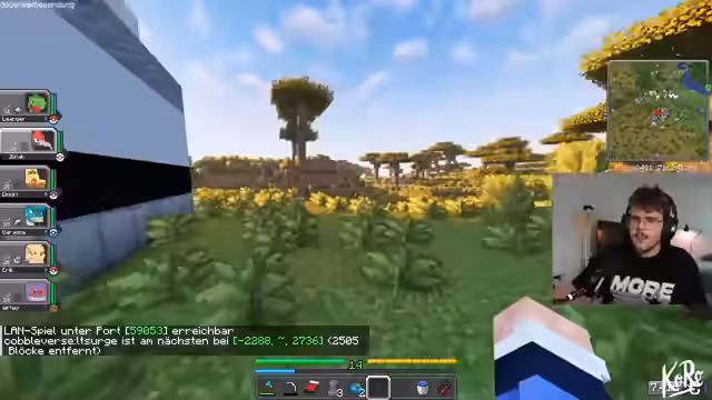 02:06:47Es wird eine Reise in Richtung Misty angekündigt, um den zweiten Orden zu holen und YouTube-Video-Material zu sammeln. Die Koordinaten minus 4032 und minus 3700 werden als Ziel festgelegt. Es wird die dritte Session Minecraft-Pokémon gespielt und festgestellt, dass es noch recht früh im Spiel ist. Der Streamer äußert seine Begeisterung für Pokémon und die Einfachheit des Zugangs für neue Zuschauer. Cobblemon wird als die Pokémon-Mod selbst und Cobbleverse als die gesamte Struktur mit Gym-Leadern und Trainern erklärt. Der Fokus liegt auf dem Fangen von Pokémon und dem Sammeln von Erfahrungspunkten, anstatt auf anderen Aspekten des Spiels. Es wird die positive Resonanz von Pokémon-Inhalten auf YouTube hervorgehoben und Shoutouts an die YouTube-Artsen gegeben. Nach kurzer Reise wird Misty erreicht.