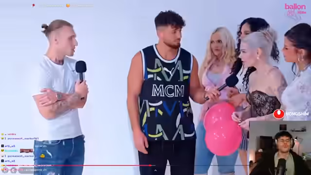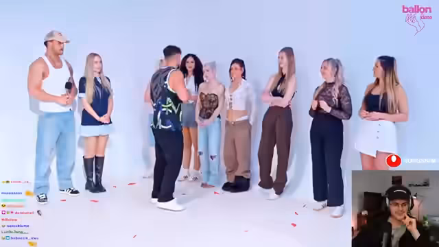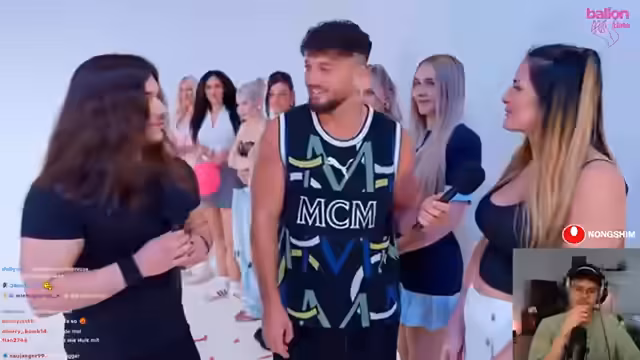 00:46:19Der Streamer leitet offiziell ins Hauptspiel des Tages über, das Format "Pop the Balloons". Er stellt den Moderator Momo und die Teilnehmerinnen vor, die sich als Single für eine Datingshow beworben haben. Die erste Kandidatin, Jamie (25), ein Türsteher, stellt sich vor und beschreibt ihre Vorlieben und Abneigungen bezüglich potenzieller Partner. Nach ihrer Vorstellung wird sie von den acht Frauen bewertet, wobei einige sie aufgrund ihrer Größe und Gesichtstätowierungen ablehnen. Die Gründe für die Entscheidungen werden im Detail besprochen und die erste Runde des Spiels findet statt.