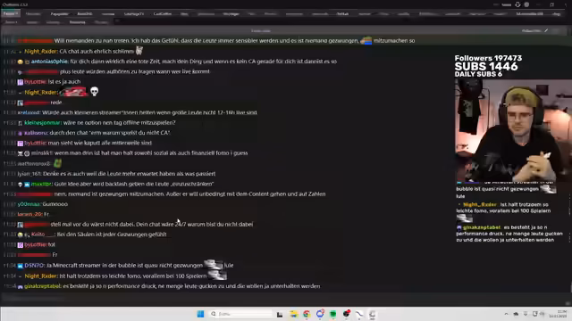 00:12:45Es wird offenbart, dass Craft Attack dem Streamer dieses Jahr keinen Spaß macht, was er auch mit Wichtiger besprochen hat, der ebenfalls eine ähnliche Haltung einnimmt. Die Hauptkritikpunkte sind ein übersättigter Markt, bei dem das Angebot die Nachfrage übersteigt, und der unterbewusste Druck, ständig performen zu müssen. Es wird vorgeschlagen, eine tägliche limitierte Stream-Zeit für jede Person einzuführen, um die Mental Health der Teilnehmer zu schützen und den Markt zu regulieren, sodass die Nachfrage wieder höher als das Angebot wird. Dieses System könnte nach einem Monat aufgehoben werden. Der Streamer betont, dass es nicht um seine individuellen Möglichkeiten in Craft Attack geht, sondern um das allgemeine Gefühl und den fehlenden 'Spark' in dieser Saison. Er geht sogar so weit zu sagen, dass er es in Ordnung fände, wenn er diese Season nicht mehr spielen dürfte, was seine tiefe Frustration mit dem aktuellen Zustand des Events unterstreicht.