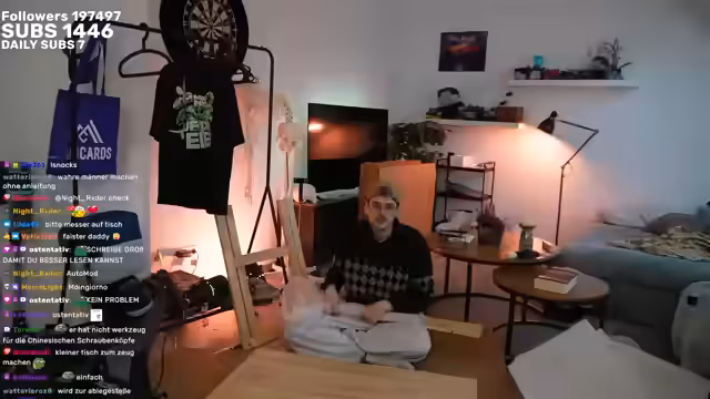 00:07:45Es besteht eine deutliche Unentschlossenheit bezüglich des heutigen Stream-Inhalts. Der Streamer äußert, dass er heute eigentlich keine Lust auf Craft Attack hat und erwägt, stattdessen einen Tisch aufzubauen, der gestern für sein Schlafzimmer geliefert wurde. Dieser Tisch wurde bereits im Juli bestellt und kam aus China über Kopenhagen, was eine lange Wartezeit von über drei Monaten mit sich brachte. Die Idee, den Tisch aufzubauen, wird als mögliche Alternative zum Streamen von Craft Attack präsentiert, da der Streamer sich nicht sicher ist, ob er in der aktuellen Economy eine andere Wahl hat, als Craft Attack zu streamen. Trotzdem scheint die Motivation dafür gering zu sein, was sich in der Aussage widerspiegelt, dass er heute kurz davor war, gar nicht zu streamen.
