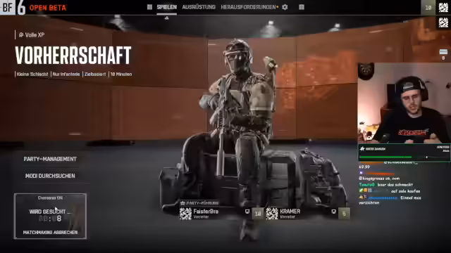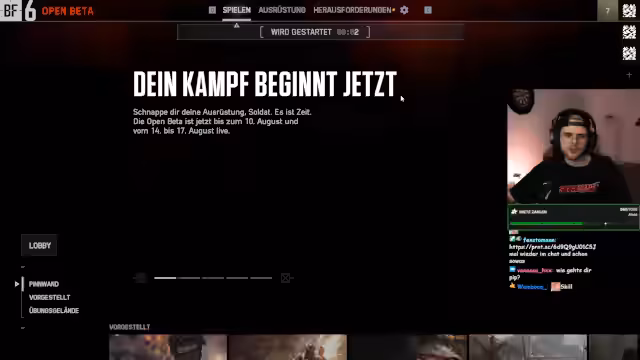 00:00:47Der Stream beginnt mit der Ankündigung, Battlefield zu zocken. Der Streamer fühlt sich körperlich nicht optimal, hat aber durch vorheriges Zocken und Einnahme von Ibuprofen ein besseres Gefühl. Es wird ein chilliger Zockerabend angekündigt und mit einem Freund namens Mango gespielt. Der Streamer erwähnt, dass das Spiel viel Spaß macht und er in einem guten Feeling ist. Technische Probleme mit der Kamera erfordern einen Neustart des Spiels.