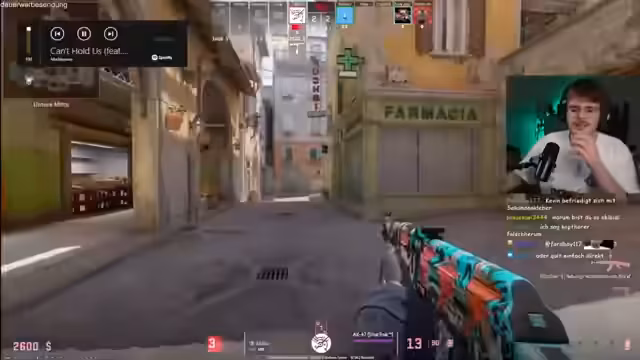 02:47:01Während des CS2-Spiels wurde eine Runde gespielt, in der das Team stark gecarried wurde. Der Gegner wurde als sehr gut eingeschätzt, der Streamer fühlte sich selbst als schlecht. Besonders auffällig waren ein Headshot durch die Wand und eine ungewöhnliche Positionierung des Gegners. Am Ende wurde die Runde gewonnen und der Gegner als netter Brite bezeichnet.