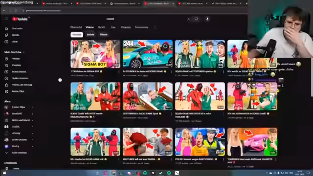 00:23:51Der Streamer schaut sich seine eigenen Videos in einem Kinozimmer an und reagiert darauf. Dabei wird festgestellt, dass Loki Sigma cool ist. Es wird überlegt, was das beliebteste Video ist und festgestellt, dass es der Team Pink Song ist. Der Streamer fragt sich, was Rebecca Wing macht und stellt fest, dass sie auch Squid Game Videos macht. Es werden verschiedene Squid Game Videoideen von Rebecca Wing aufgezählt, wie z.B. Real Life gegen Rote Squid Game 2 Wächter nachts, Mein YouTube-Kanal wird gelöscht, Ich muss bei Squid Game 2 die Netflix-Serie als 456 mitmachen und FaceTime niemals mit 001 Frontman. Der Streamer schaut sich ein Video an, in dem Rebecca Wing die Squid Game Nummer anruft und reagiert darauf. Es wird diskutiert, ob der Streamer bei einem Squid Game mitmachen soll.