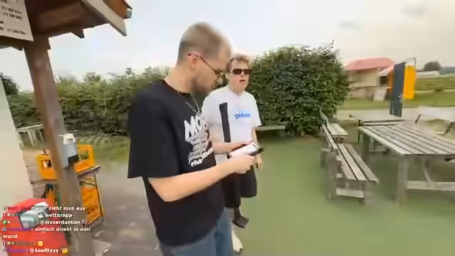 00:47:16Die Streamer erreichen ihr Ziel, ein Café, und genießen die Atmosphäre der Terrasse. Die Kamera und das Bild werden weiter optimiert, indem die Einstellungen in der App von 'Cinematic' auf 'Standard' umgestellt werden, was das Bild sauberer erscheinen lässt. Währenddessen tauchen verschiedene Witze und Running Gags auf, wie 'Ome' und 'Kylo', um den Chat zu unterhalten. Auch ein E-Kiosk wird kurz besucht und ein Code wird falsch eingegeben, was zu humorvollen Reaktionen führt.