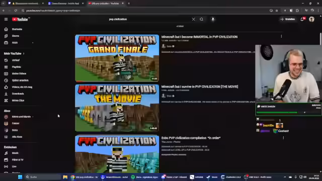 00:34:48Nach verschiedenen anderen Themen und Diskussionen beginnt der Hauptinhalt des Streams: das Anschauen von 'PvP Civilization'. Der Streamer setzt den Film fort und kommentiert die Handlung und Entscheidungen der Charaktere. Er analysiert die Spielmechanik, in der der Lebenswert der Spieler durch die Haltbarkeit ihrer Schwerter bestimmt wird. Er ist fasziniert von der Story, insbesondere vom unerwarteten Tod des Protagonisten und seiner subsequenten Wiederbelebung, was viele unbeantwortete Fragen aufwirft.
