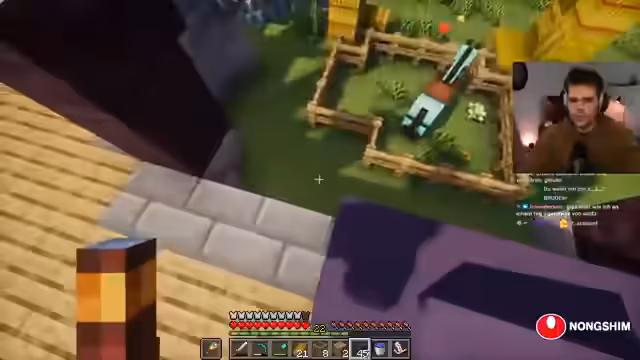 01:02:08Der Streamer stürzt in 'Minecraft' ein und präsentiert sein fortgeschrittenes Bauprojekt. Er zeigt sich begeistert vom progressierenden Bau seines Hauses und plant, bestimmte Ressourcen wie Strings und Cherrywood zu farmen. Gleichzeitig erwähnt er sein Pferd 'Karl', das plötzlich nicht mehr auffindbar ist, was für eine kurze Verwirrung sorgt.