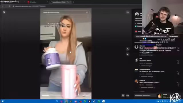00:25:44Es wird von einem Protein-Shake berichtet, den jemand für seinen Mann zubereitet hat, inklusive Whisky. Es wird von Proteinriegeln aus dem DM abgeraten, da diese wenig Protein enthalten. Stattdessen wird ein vegetarischer Crispy Burger als Mahlzeit erwähnt, sowie Orangensaft, Grillgemüse, M&M's, Chocobons und Kinderriegel. Es wird sich über die hohen Preise von Prada Cups Schuhen gewundert und festgestellt, dass neue Schuhe benötigt werden. Der Streamer hasst es Schuhe zu kaufen.
