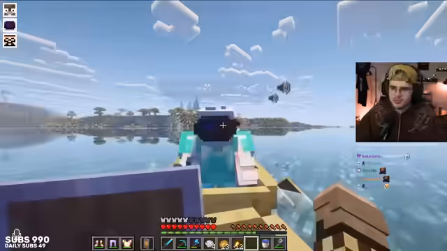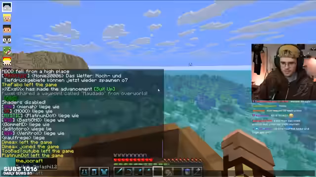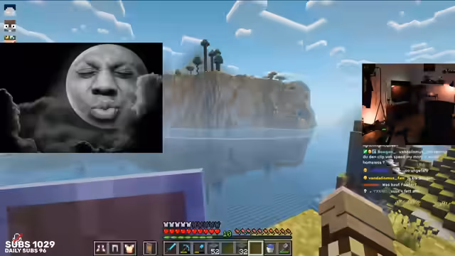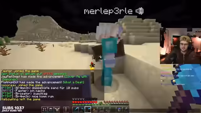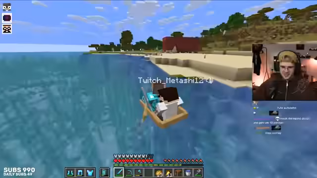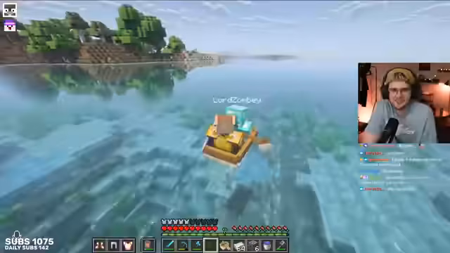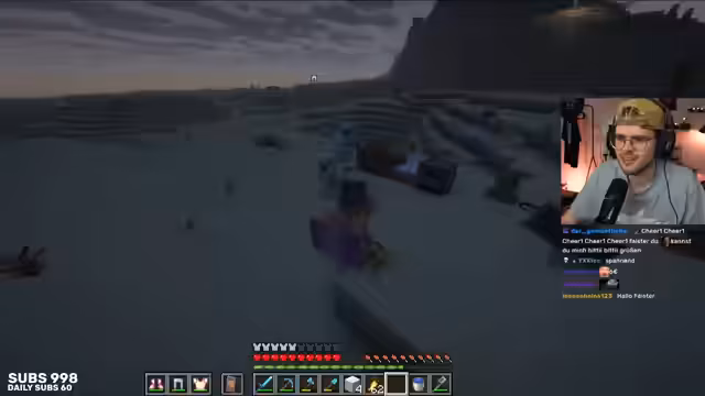 08:29:47Es wird eine humorvolle Diskussion über zweideutige oder versehentlich rassistische Formulierungen geführt, wobei der Begriff "Common Brush" als Beispiel genannt wird. Der Streamer wundert sich über seine mangelnde Kenntnis solcher Dinge, obwohl er schon lange streamt. Es kommt zu einer Rollenspiel-Verfolgungsjagd, bei der der Streamer andere Spieler auf einem Schiff bedroht und "ausraubt". Diese Interaktion wird als Freundestest entlarvt, bei dem der Streamer seine "Opfer" für ihre Kooperation belohnt. Anschließend wird die Ausrüstung der Spieler verglichen, wobei die goldene Rüstung eines Spielers als "Bauer sucht Frau"-Look bezeichnet wird. Es wird über die Möglichkeit gesprochen, Villager nicht anzuleinen, sondern sie im Boot mitzunehmen.