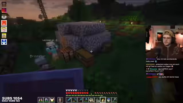 09:20:20Der Streamer fragt sich, wie man Villager vermehrt und ob dies in der Nähe einer Eisenfarm möglich ist. Es wird erklärt, dass man Villager-Brote und Betten benötigt, um sie zu züchten. Er überlegt, einige Villager zu Mr. Boy oder Paluten zu bringen. Eine Frage nach dem Lieblings-Süßgebäck wird gestellt, woraufhin Zupfkuchen und Kirschtaschen genannt werden, obwohl letztere selten gegessen werden, da sie sehr süß sind. Es wird erwähnt, dass DosenLP zwei OP-Goldäpfel in seiner Ancient City gefunden hat, was als wichtige Information für die Welt kommentiert wird. Der Streamer plant, noch zehn Trades abzuschließen und Tiere zu züchten, um weitere Level zu erhalten.