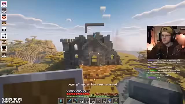 09:44:43Der Streamer ist hauptsächlich mit seinem Minecraft-Bauprojekt beschäftigt. Er beschreibt, wie er Holz für ein Dach findet und sich über einen Vorschlag aus dem Chat für die Dachfarbe (Mangrovenholz) freut. Neben dem Bauen beschäftigt er sich mit der Minecraft-Welt, unter anderem mit dem Anleihen von Tieren und der Frage, ob er sein Tagesziel von einem Tier pro Tag erreicht hat. Er erwähnt auch ein überraschendes Treffen mit einem anderen Spieler in einer anderen Minecraft-Welt und seine eigene Krankheit, die ihn etwas ausbremst.