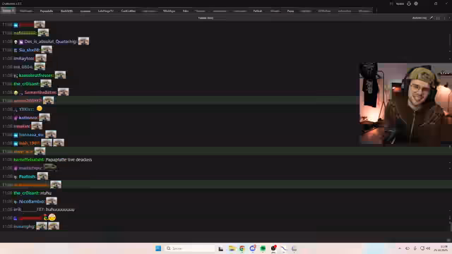 10:35:17Der Streamer wird unerwartet von Basili geradet, kurz nachdem er spekuliert hatte, dass Kroko nicht vor 23 Uhr erscheinen würde. Dies führt zu einer kurzen Diskussion über den Raid-Gewinner. Später kommt es zu einer Interaktion mit einem Zuschauer, der Probleme hat, dem Server beizutreten, da er nicht gewhitelistet ist. Es stellt sich heraus, dass der Zuschauer die Regeln nicht vollständig gelesen hat, um die erforderliche Rolle zu erhalten. Der Streamer erklärt die Notwendigkeit, alle Regeln zu lesen, um Zugang zu erhalten, und bietet an, den Zuschauer für die Whitelist vorzuschlagen.