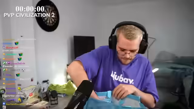 00:06:34Nach einer kurzen persönlichen Anrede und einem Ausruf des Stream-Titels schaltet der Streamer auf seinen Zuschauer-Kanal. Er berichtet von seinem produktiven Vormittag, nachdem er früher als sonst aufgewacht ist. Um 9 Uhr wach geworden, hat er mit Kevin bis Mitternacht per Pwfxer gezockt und anschließend Haikyuu geschaut. Nachdem er an diesem Tag Wäsche gemacht, die Küche sauber gemacht und sich gesund ernährt hat, ist er nun bereit für die anstehende PvP Civilization 2-Watchparty, auf die er sich freut.