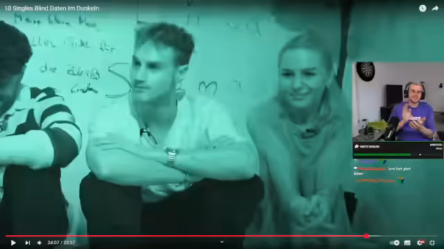 00:27:00Nach einer kurzen Pause mit einem Lego-Sets-Highlight wechselt der Streamer zum Format '10 Singles Blind Daten im Dunkeln'. Er kommentiert die verschiedenen Teilnehmer und deren Vorstellungen, die teils als problematisch oder absichtlich unterhaltsam wirken. Ein Kandidat, Tom, löst sich freiwillig, da er bereits einen Freund hat. Das Rennen zwischen Ida und Katharina um Liam schreit Spannung auf, nachdem sich Linda und Paul bereits als Paar gefunden haben.