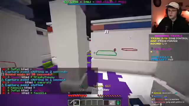 01:07:02Zum Ende des Spiels "Block Wars" ist der Streamer frustriert über die eigene Performance, da er mit seinem Schwertkit kaum Wirkung zeigt und seine Mitspieler mit dem Bogenkit nicht genug Schusswaffe aufbringen. Er wechselt selbst auf Crossbow, als er feststellt, dass das Schwertkit ungeeignet ist. Gleichzeitig hat er Probleme mit seinen Fähigkeiten und dem Spiel-Kit, was seine Effektivität weiter mindert. Das Spiel endet für sein Team erfolglos.