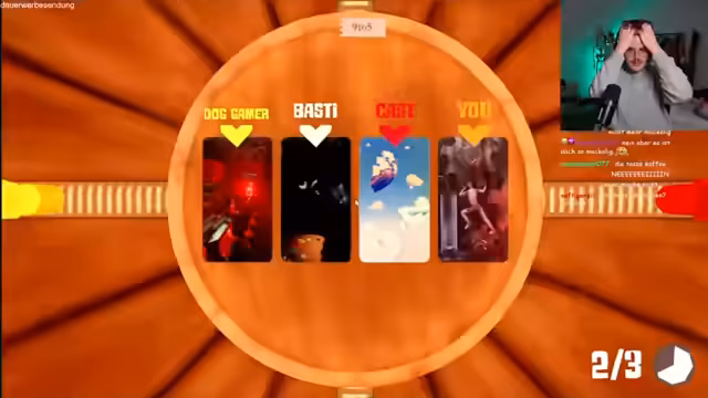 06:11:10Die Gruppe spielt weiter und diskutiert über den nächsten Prompt "Tod durch Amboss". Es wird erklärt, dass man nicht das Thema treffen will, sondern die Leute reinlegen muss. Die Gruppe versucht, die richtige Karte zu finden und die anderen zu täuschen. Es wird erklärt, dass man Punkte verliert, wenn man die richtige Karte wählt. Die Runde wird gespielt, und es wird kommentiert, dass es so aussieht, als würde etwas herunterfallen. Es wird erklärt, dass das Ziel ist, das Männchen in die Mitte zu bekommen, um Punkte zu verlieren. Wilbo wird für das Spiel gelobt. Der nächste Prompt ist GTA Vice City. Es wird diskutiert, wie man das Spiel erklären kann und dass die Karte zum Thema passen muss.