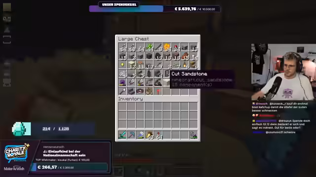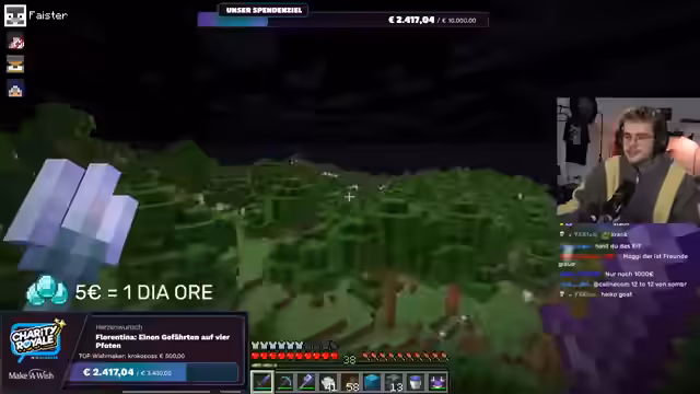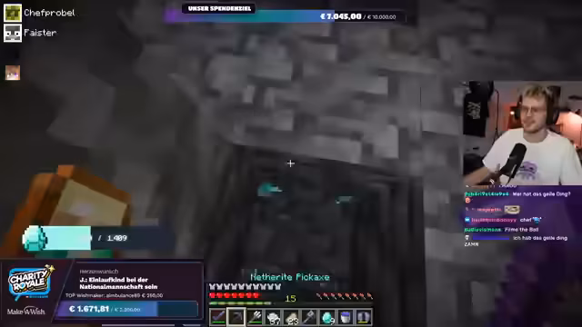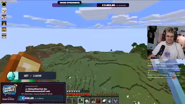06:17:16Ein Update zum aktuellen Stand der Charity-Spenden wird gegeben. Es wurde bereits eine beeindruckende Summe von 7.080 Euro gesammelt, was 1.416 Diamanten entspricht. Der Streamer betont, wie wichtig jeder einzelne Euro sei, und fordert die Zuschauer weiterhin auf, für den guten Zweck zu spenden. Gleichzeitig wird der Fortschritt am aktuellen Bauprojekt, einer Cave, diskutiert, bei der eine große Menge an Diamanten gefarmt wurde. Der Ton ist dankbar und motiviert.