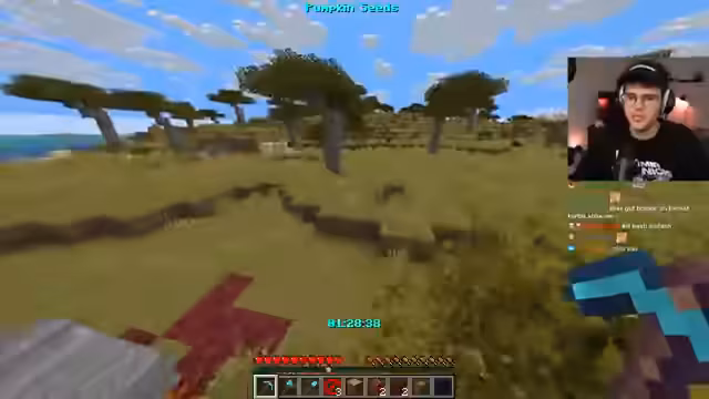 05:04:23Der Streamer startet die Challenge mit dem Ziel, ein Carved Pumpkin zu craften. Die erste große Herausforderung besteht darin, Pumpkin Seeds zu finden, wobei er eine lustige Anekdote teilt, dass Kürbisse seltener spawnen als Diamanten. Nachdem er die Samen gefunden hat, stellt er fest, dass man ohne Ofen keine Kürbisse verarbeiten kann. Dies führt zu einer nervenaufreibenden Suche nach einem Dorf mit einem Schmiede-Ofen, wobei er den Teilnehmern einen Fehler vorwirft, der ihn 10 Minuten kostete.