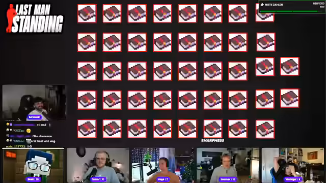 06:24:26Die Teilnehmer engagieren sich in einem spannenden Quiz über Minecraft-Items, bei dem es um die korrekten Benennungen von Lebensmitteln und Werkzeugen geht. Es kommt zu hitzigen Debatten, ob Chorusfrucht oder giftige Kartoffel als Antwort akzeptiert wird, und einige Spieler verlieren die Nerven. Überdies beginnt ein Wettkampf um verschiedene Verzauberungen, wobei die Teilnehmer teils auf Englisch, teils auf Deutsch antworten und ihre Kenntnisse durch Herausforderungen unter Beweis stellen müssen. Der Verlauf ist geprägt von Zeitdruck, falschen Antworten und stetigem Abwechseln in der Frageführung.