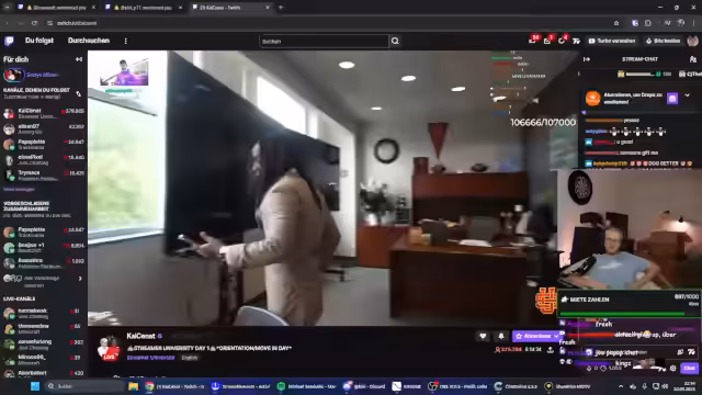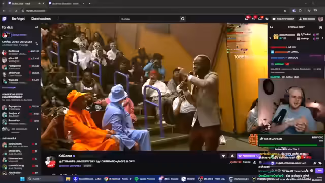 09:37:47Es werden vermehrt als kontrovers wahrgenommene Trends und Vorfälle im Internet diskutiert, wobei auch mögliche Traumata thematisiert werden. Es wird spekuliert, ob die Teilnehmer der Streamer-University vor Ort bereits selbst streamen dürfen oder dies noch verboten ist, und die aktuelle Meta auf Twitch als von 'geilen Frauen' dominiert beschrieben.